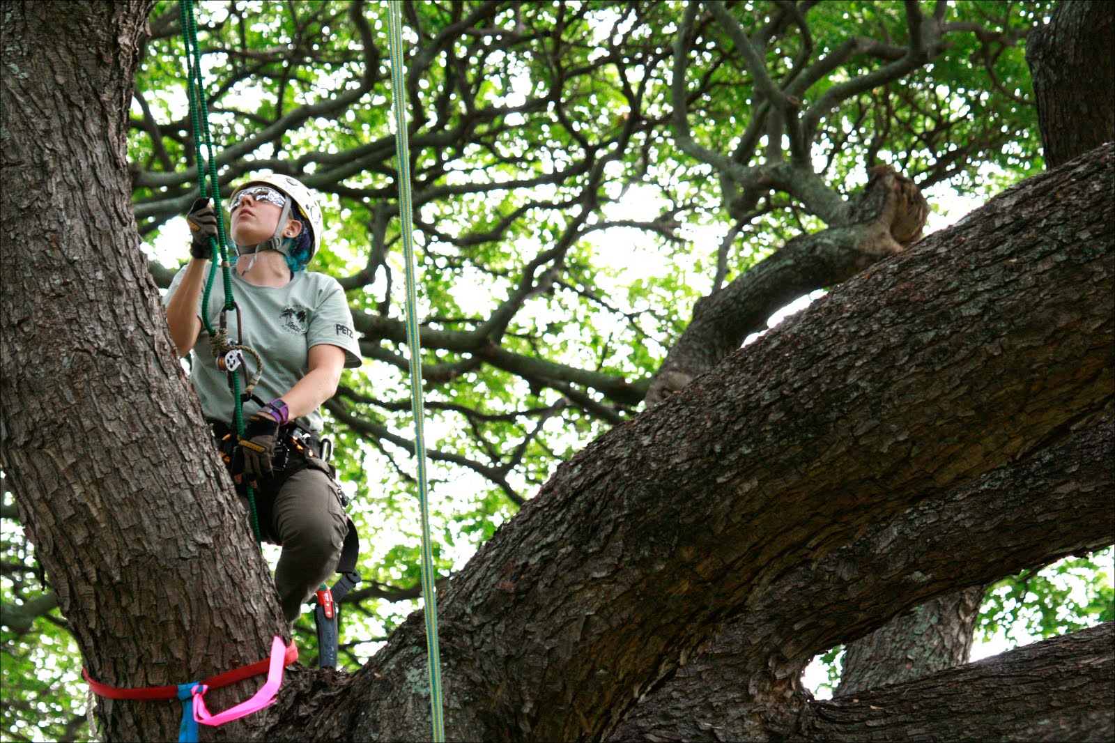 the hawaii state tree climbing championships were held the past weekend at moanalua gardens. my better half, ilana nimz competed for the first time amongst veteran tree climbing veterans. nimz performed grandly despite only recently acquiring the skills of a tree worker. friends molly jenkins - with michael - and ryan schulz - with lydia - came out to support with enthusiasm.