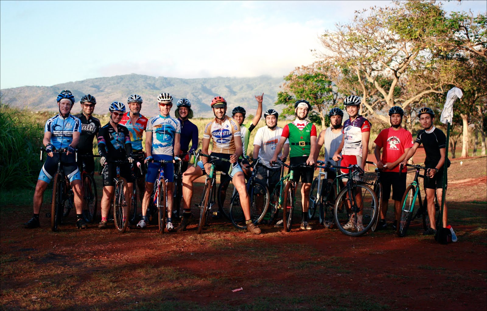 the second edition of dale dolejsi's "superprestige hawaii" cyclocross races bought out seventeen cyclists at the start. throughout the race at least four other cyclists tardily joined in. friends ellen meiser - the following four photos are courtesy of - and rebekah phillips provided support. the top five appeared to be: ray brust, matt kriegler, eric lau, zebulon brown and maria stewart. the next race will be in two weeks on december 23rd at central oahu regional park - skinsuit up.